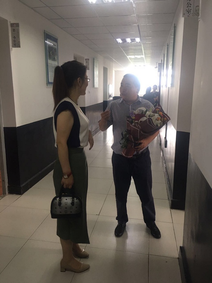 17届家长给周校长献花
