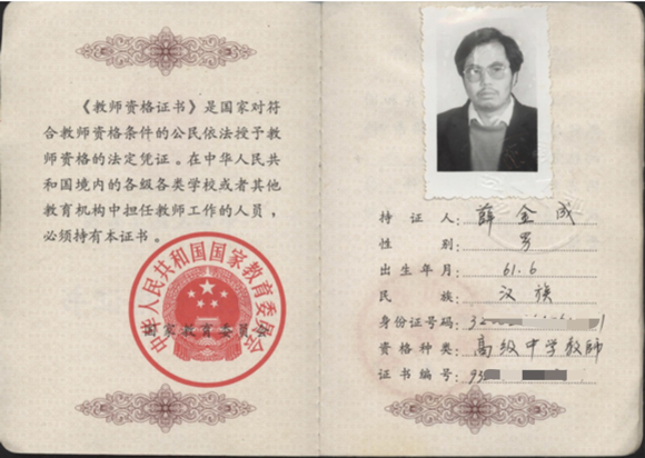化学薛老师,1985年南京师范大学化学系毕业(本科 ),中共党员,中学高级教师,淮安市政府表彰的«2009年度淮安市有突出贡献的中青年专家 »、淮安市骨干教师、市学科带头人、市优秀班主任、市中青年岗位能手。从教40年,历任江苏省涟水县第一中学德育副主任、教务主任、级部主任、教学副校长、工会主席兼校长办公室主任等职务。