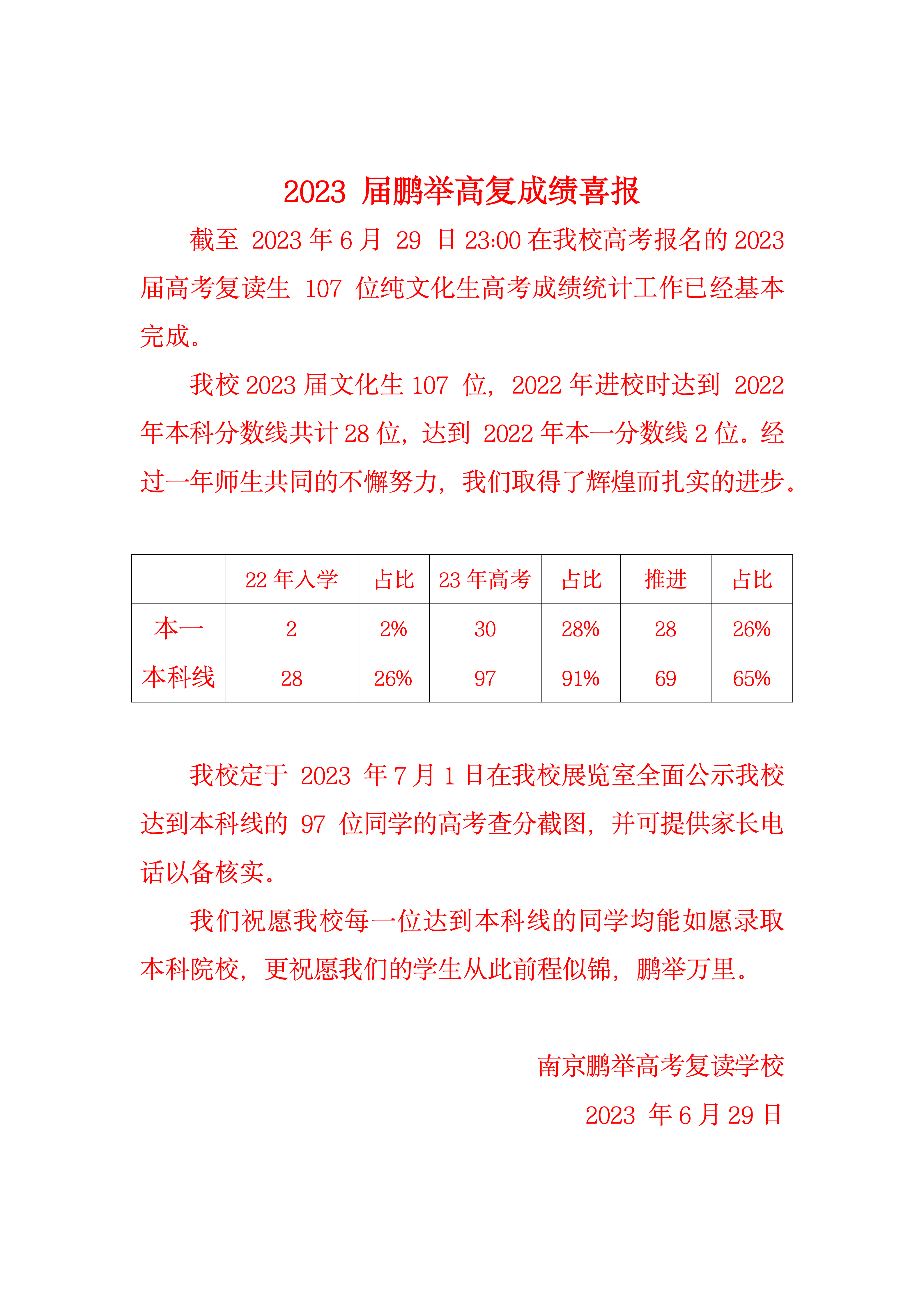 2022届鹏举高复文化生成绩喜报