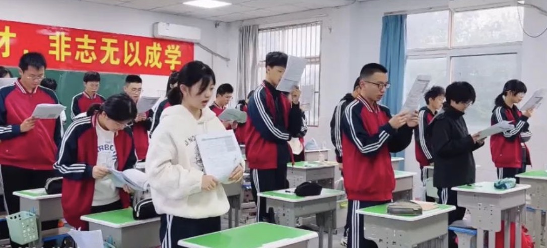 早读的前15分钟到前20分钟,所有学生站起来大声朗读,主要是为了提高早读效率。因为大声朗读的时候,学生的大脑、眼睛、嘴和耳朵同时在工作,学生相当于是两遍记忆。皆声之至清者,而读书声为最
