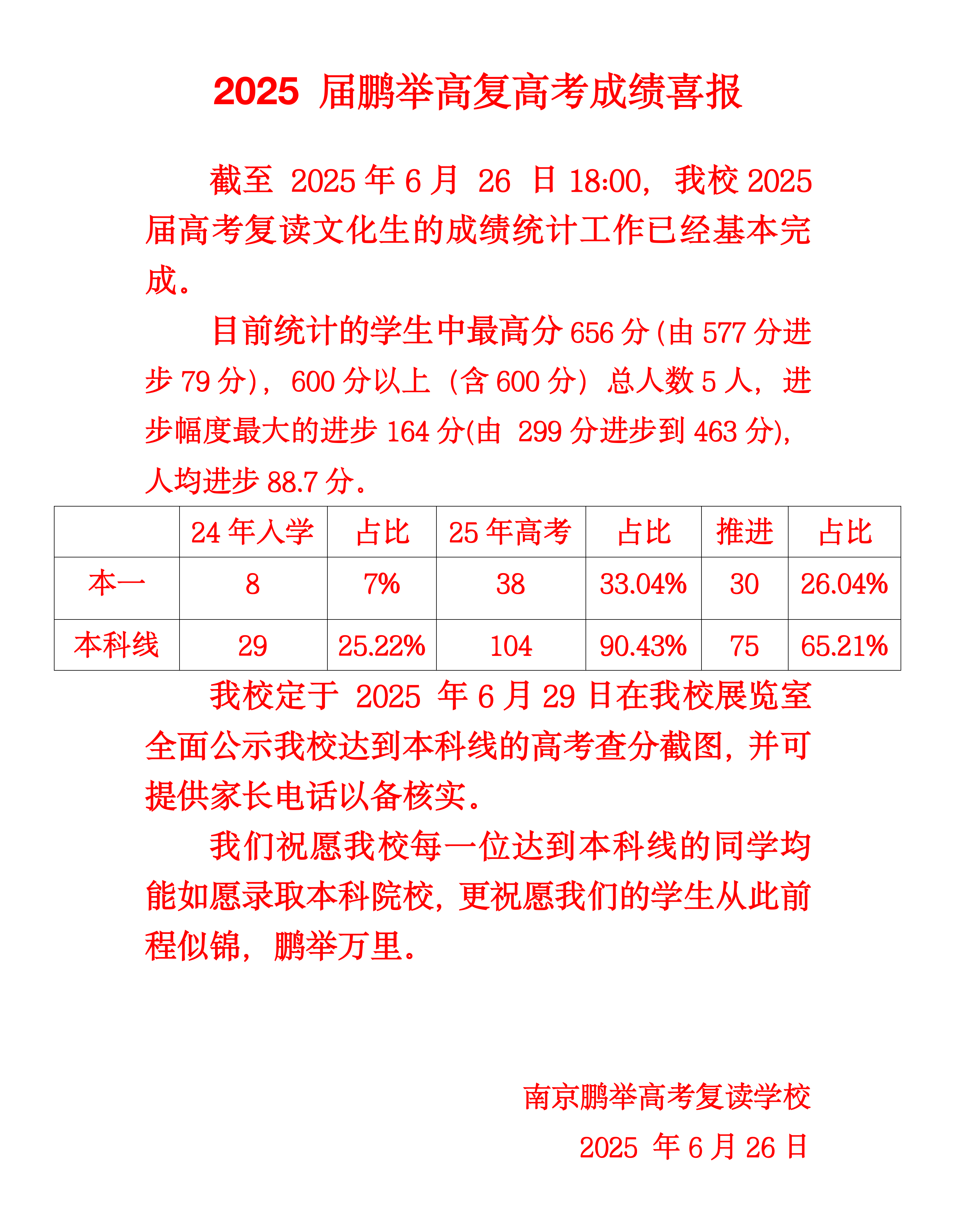 2024届鹏举高复文化生成绩喜报