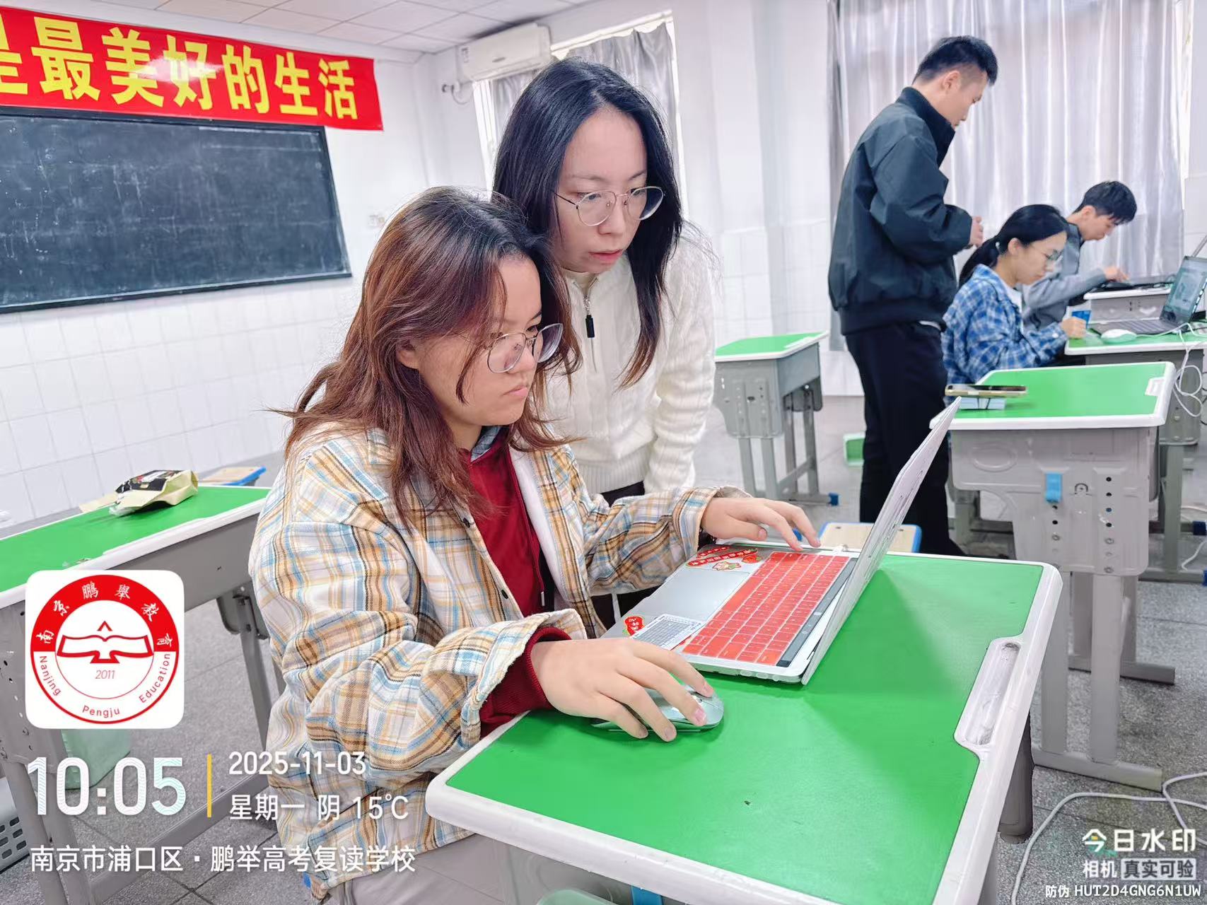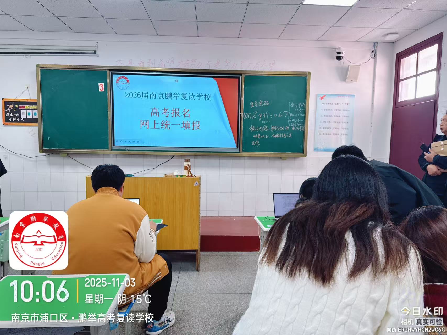 11月3日,2026年江苏省高考网上报名正式开启。为确保每一位考生信息准确、流程顺畅、绝不漏报错报,南京鹏举高考复读学校统一组织、集中安排,由班主任全程陪同,一对一现场指导、逐项核对、反复审核,圆满完成全体学生高考报名工作。